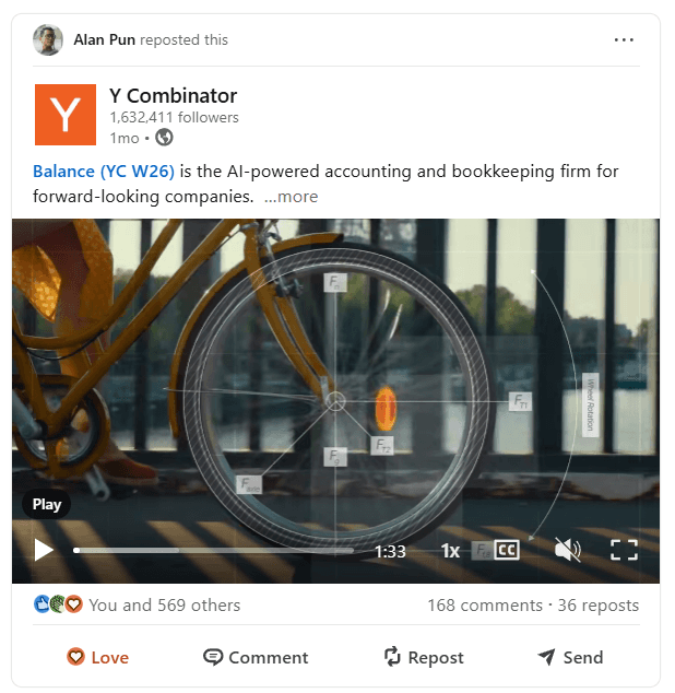 The video was launched via Y Combinator's LinkedIn, creating a buzz and high levels of engagement